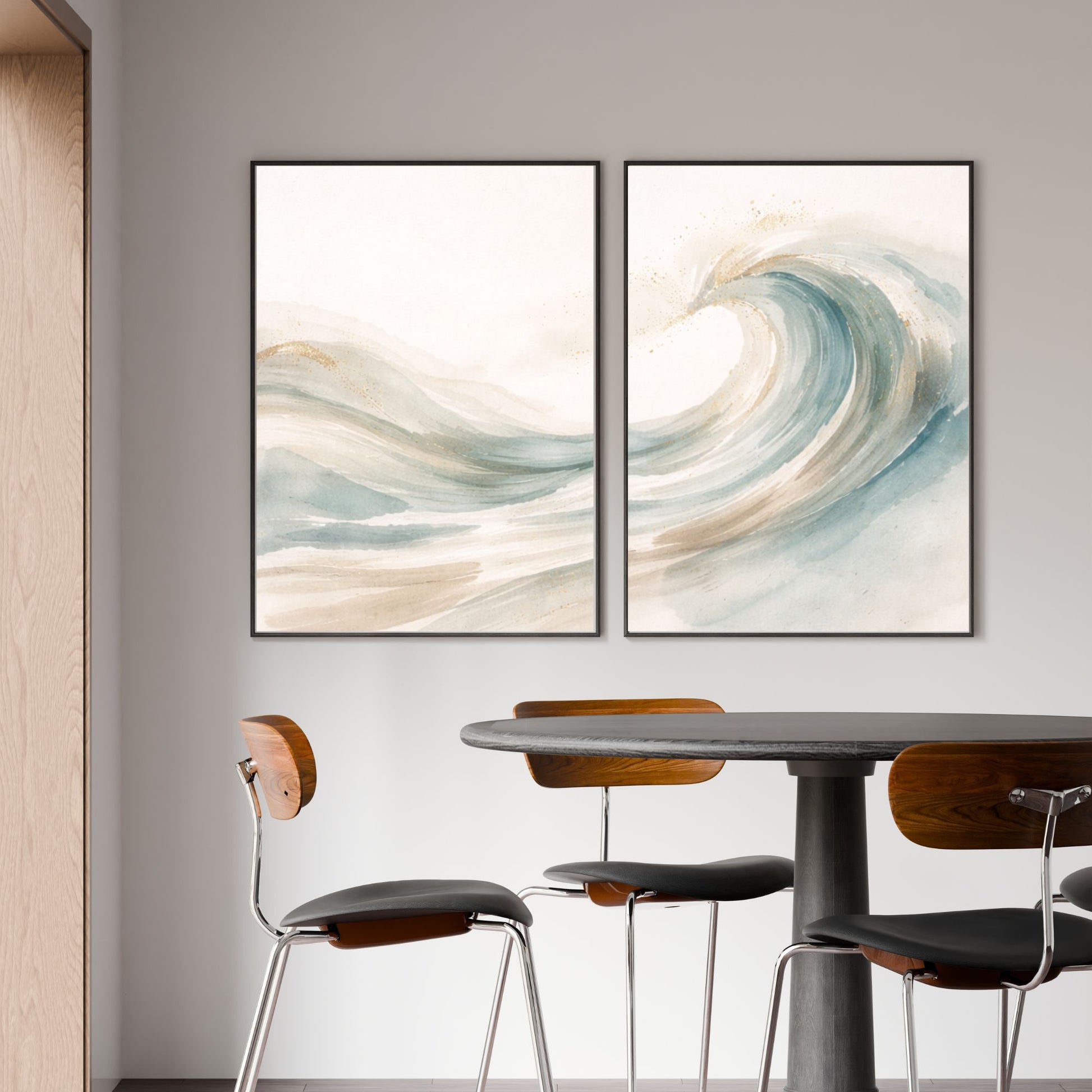 The composition feels dynamic yet peaceful — a perfect balance between motion and serenity. Displayed alone it makes a subtle statement, but paired with Wave Flow I it forms a harmonious, continuous ocean-inspired artwork.